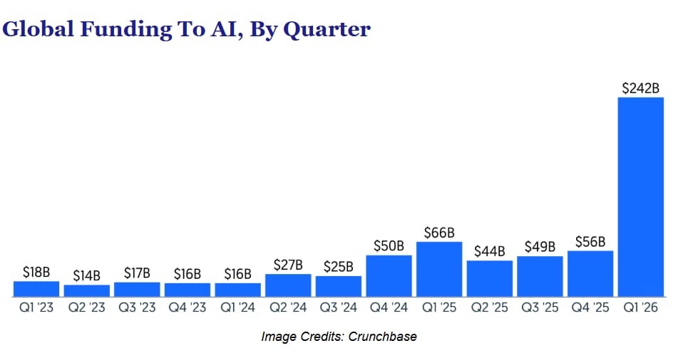 [5] 💸 Global startup funding hit a record $297 billion in Q1 2026, driven by four mega-rounds totaling $188 billion by OpenAI, Anthropic, xAI, and Waymo, underscoring AI’s outsized influence on venture markets. More from TechCrunch.